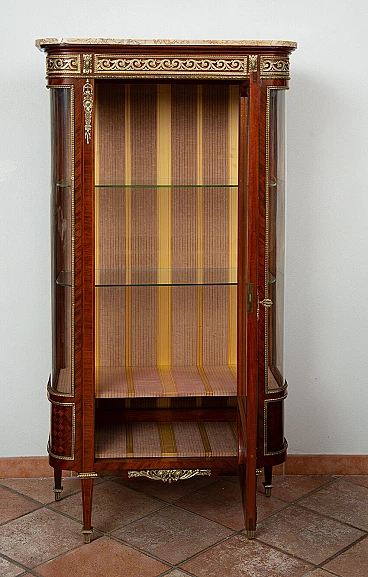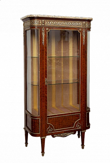 Napoleon III showcase in exotic precious woods with marble top, 19th century