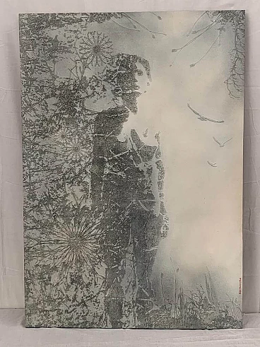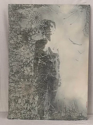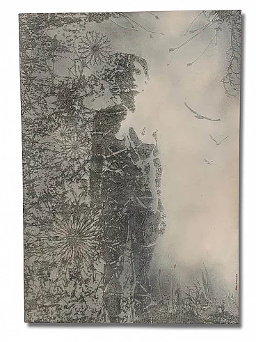 Silver panel in sculpted resin, Psychedelic art, 70s