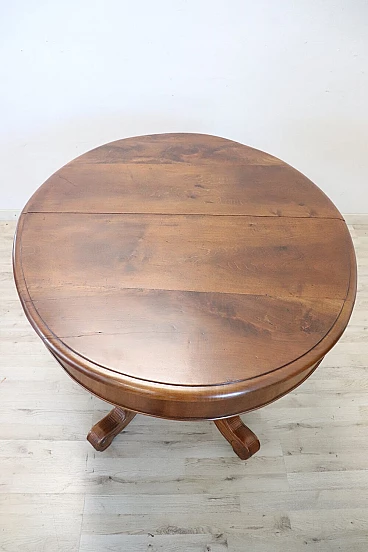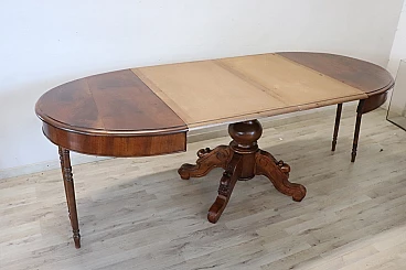 Louis Philippe oval extendable table in solid walnut, mid-19th century (around 1840s).