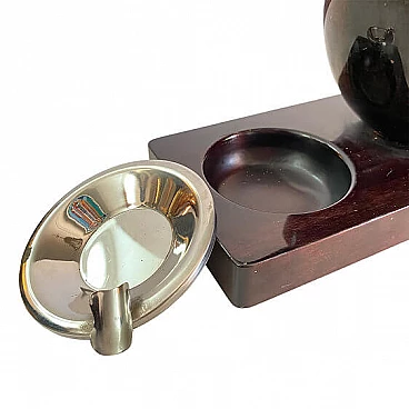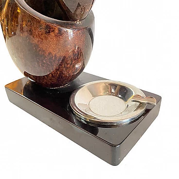 Iconic tobacco-colored goatskin lamp designed by Aldo Tura, Italy 1970. The lamp also serves as an ashtray. Excellent vintage condition, minor signs of ageing.