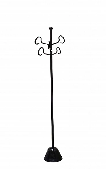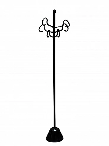 Servomanto floor coat rack by Achille Castiglioni for Zanotta, 1980s (1985). Part of the Servi series by Achille and Pier Giacomo Castiglioni. Polypropylene base, steel rod and hooks; totally painted black.