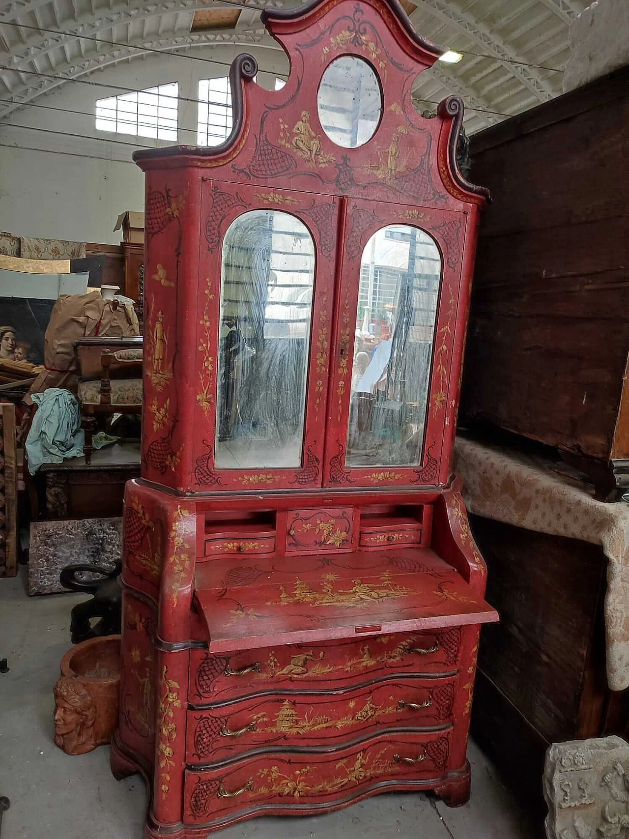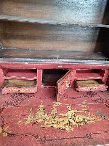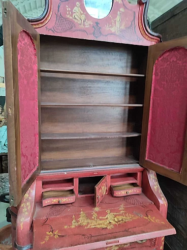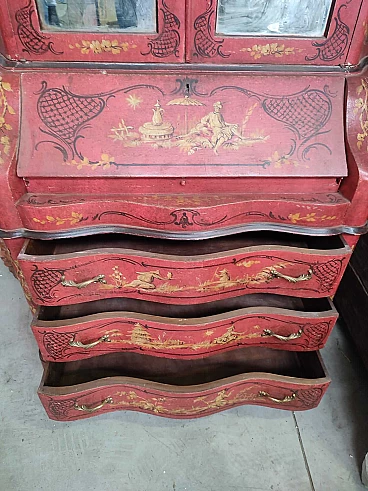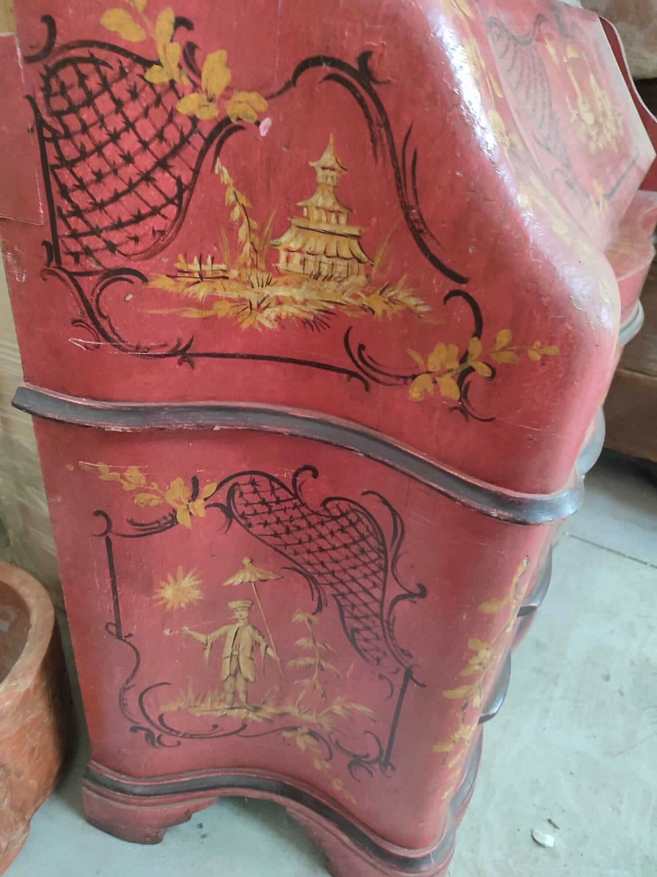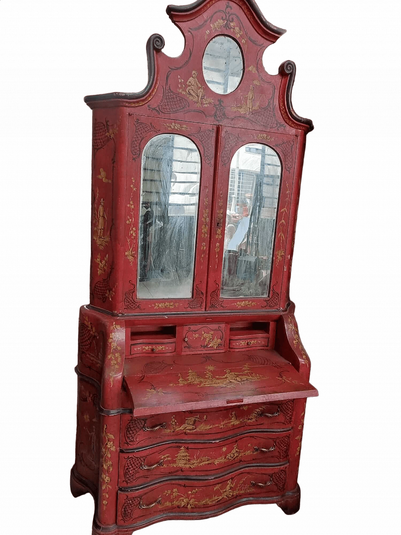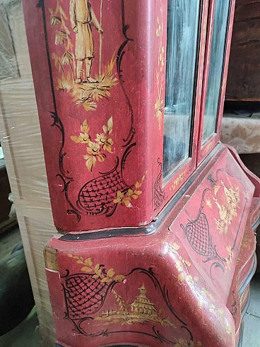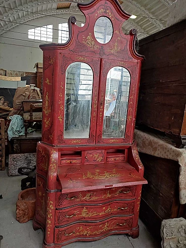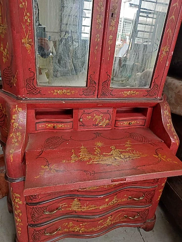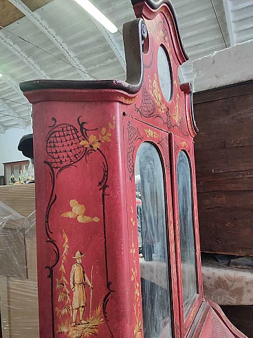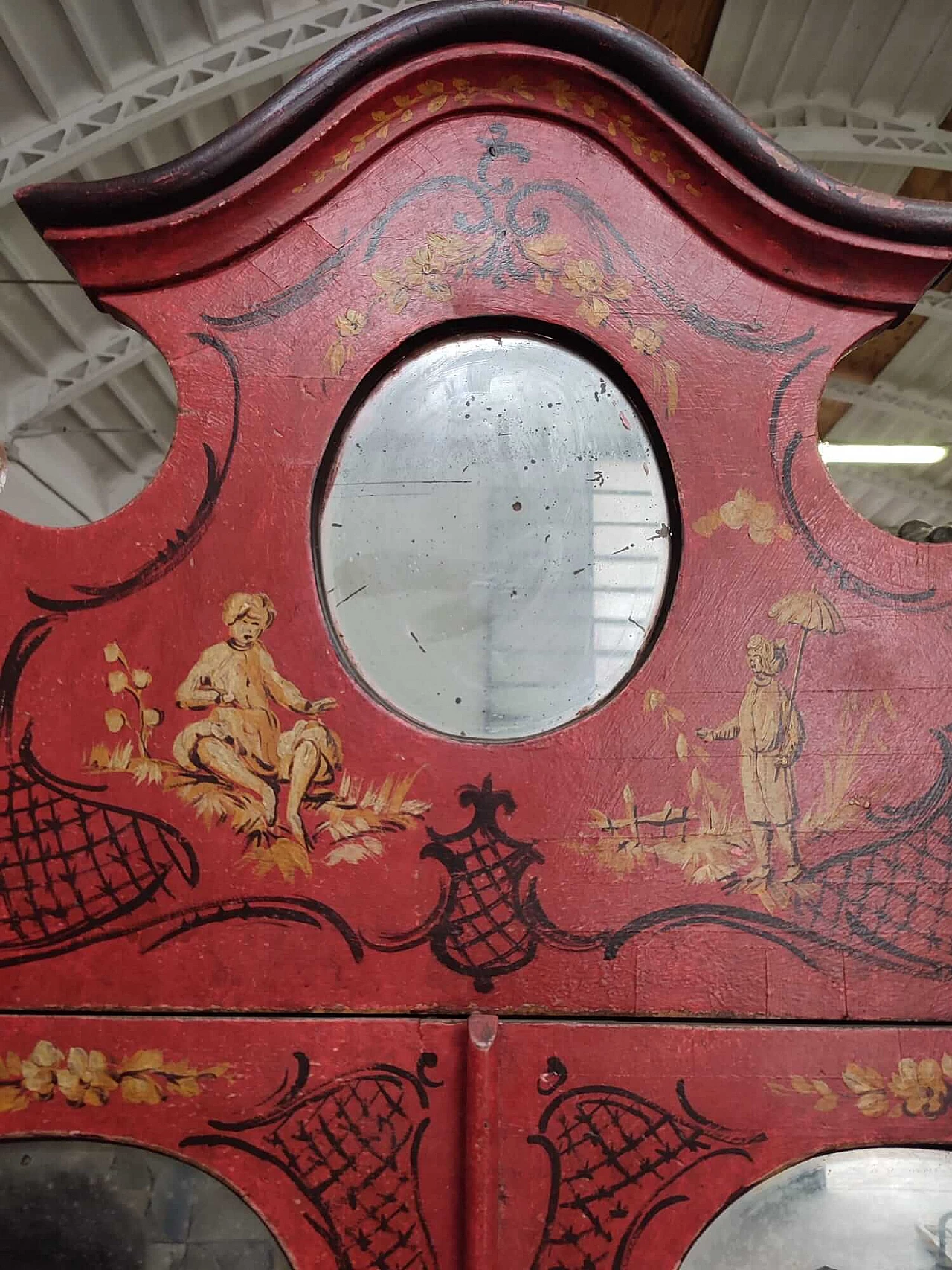 Red lacquered wood trumeau with chinoiserie, early 20th century