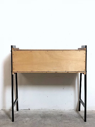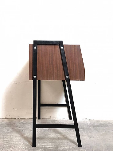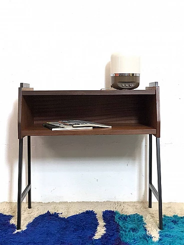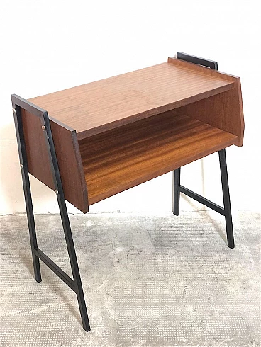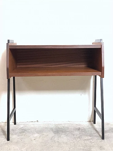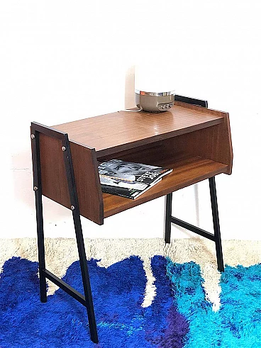 Teak veneered wood and metal coffee table with open compartment, 1960s