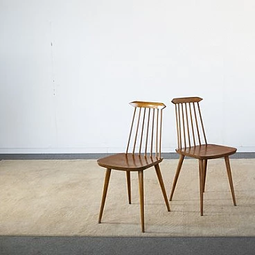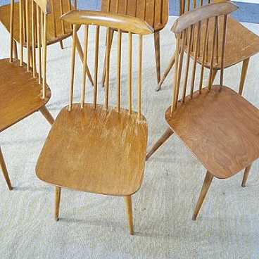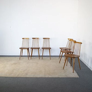6 Pear wood chairs in the style of Folke Pålsson, 1960s
