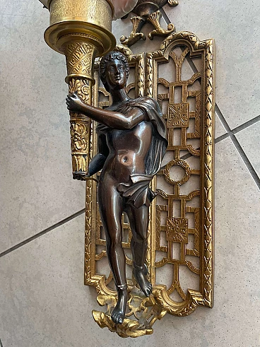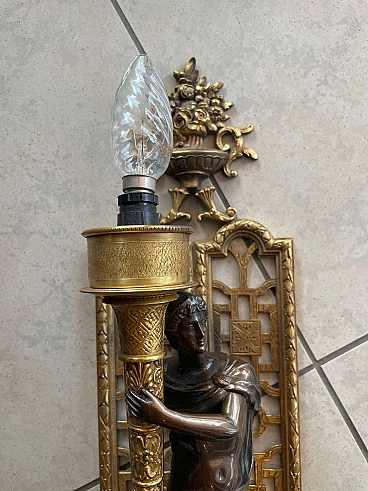 Empire-style wall sconce with bronze and brass statue, 1960s