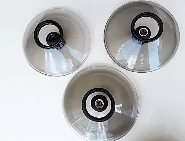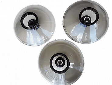 3 Smoked glass ceiling lights by Giusto Toso for Leucos, 1970s.