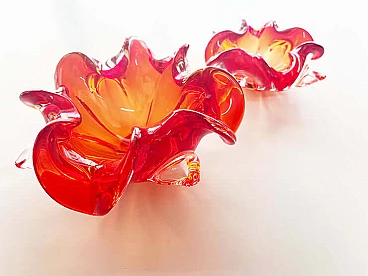 Pair of red Murano glass flower-shaped bowls, 1970s