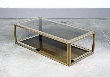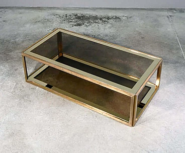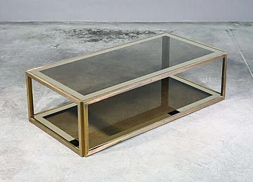 Gilded metal and smoked glass coffee table in the style of Romeo Rega, 1960s