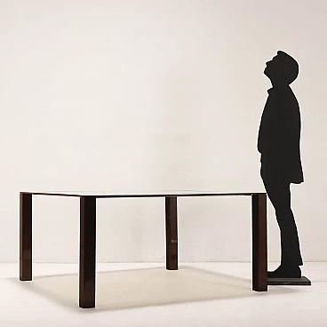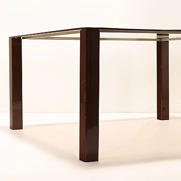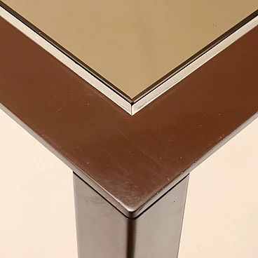 Square enameled metal and smoked glass table, 1980s