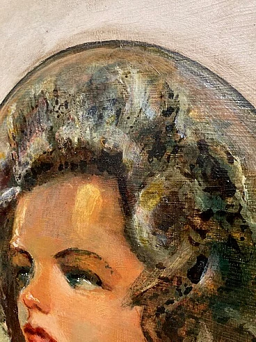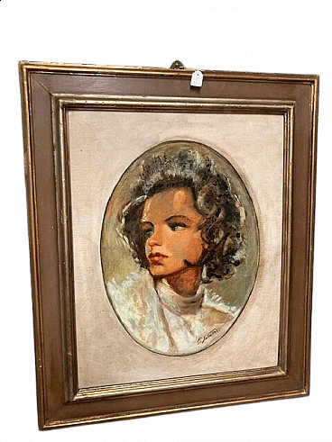 P. Salatini, Woman's Face, oil on cardboard in lacquered frame, 1950s