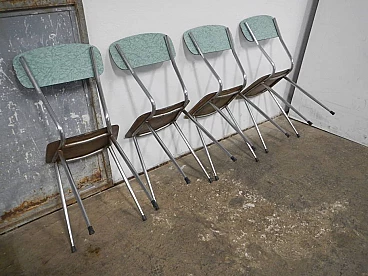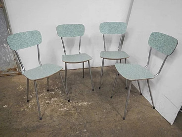 4 Chairs in green formica with grey painted metal frame, 1960s