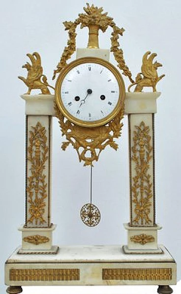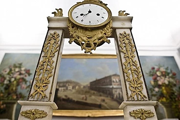 Louis XVI white marble and gilded bronze table clock, 18th century