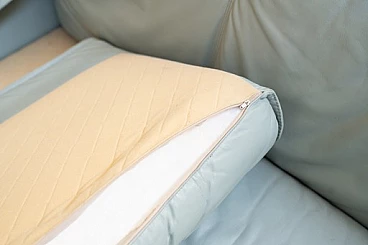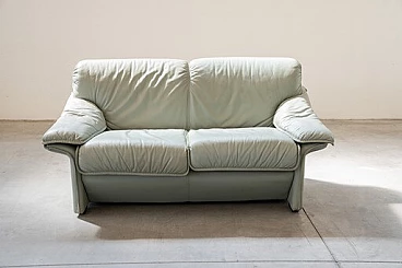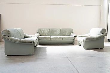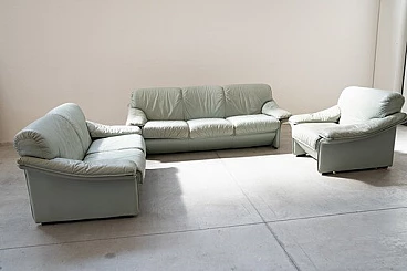 Pair of sofas and armchair in pale blue leatherette by FD Salotti, 1970s