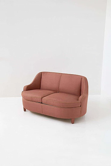 The delightful two-seater sofa attributed to the esteemed 1950s designer Gio Ponti is a remarkable piece of furniture. By purchasing this sofa, you not only take home an elegant and original Italian sofa, but also a significant piece of mid-century Italian design history. It embodies the timeless qualities of elegance and craftsmanship that were fundamental in that era.