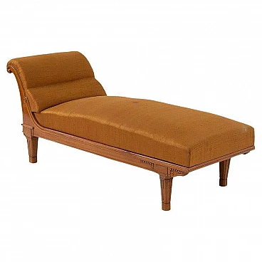 The refined French chaise longue, dating from the period between Art Nouveau and Art Deco, is a truly exquisite piece of furniture. Upholstered in a luxurious orange silk satin, it exudes elegance and sophistication. The use of such a precious fabric adds a touch of opulence and elevates the aesthetic appeal of the chaise lounge.