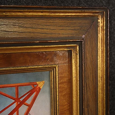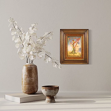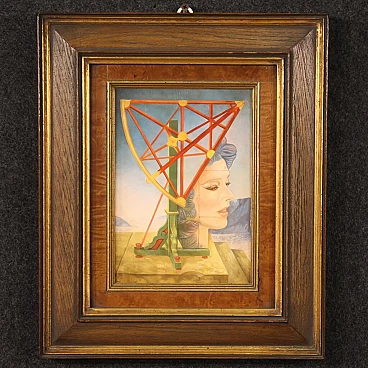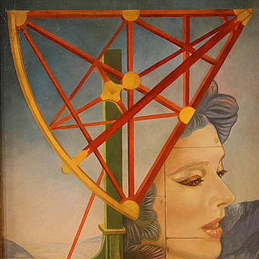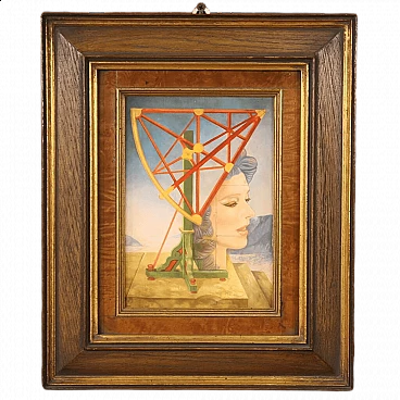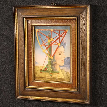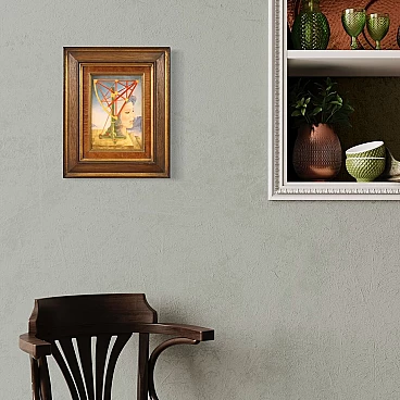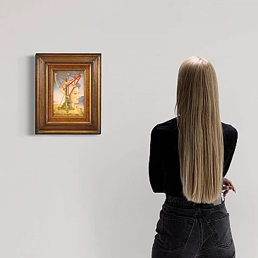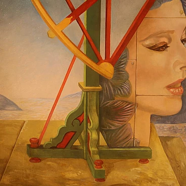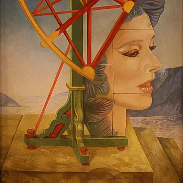 Jean Michel Lengrand, Surrealist painting, oil on panel, 1980s