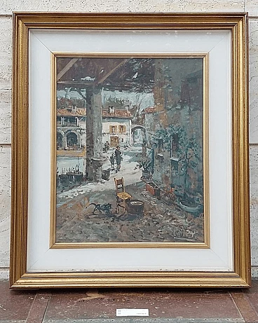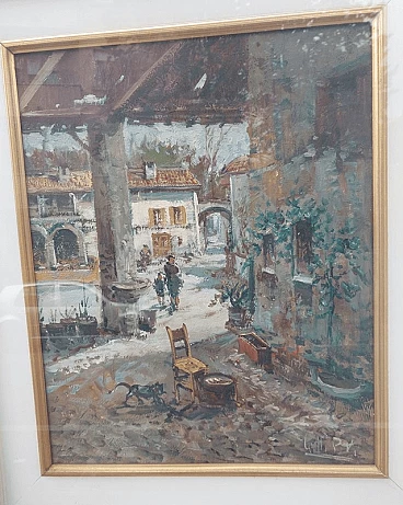 Pietro Virgilio Lietti, glimpse of courtyard, oil painting on canvas