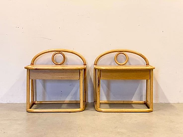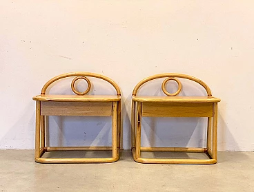 Pair of ash and bamboo bedside tables by Gervasoni, 1980s