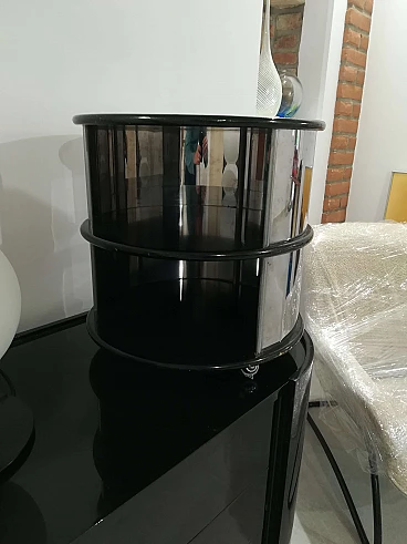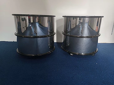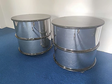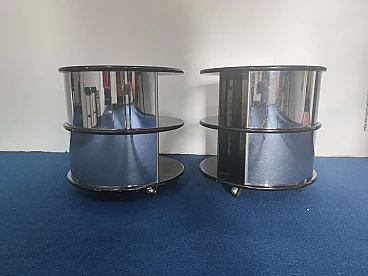 Pair of bedside tables made of painted plywood and aluminium in Willy Rizzo style.