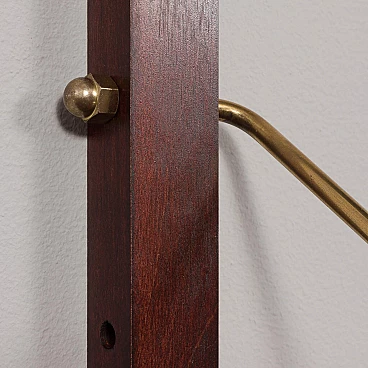 a desk with two drawers; H:12 / W: 80 / D: 45 cm (height of drawers: 8 cm), a 45 cm deep desk shelf, a sliding door cabinet with interior shelf; H: 35 / W: 80 / D: 35 cm, 3 200 cm long wooden wall rails combined with 2 pieces, each 100 cm long, brass fittings and bolts. Overall, the wall cabinet is in very good vintage condition, with slight signs of age and use.
