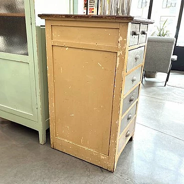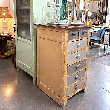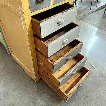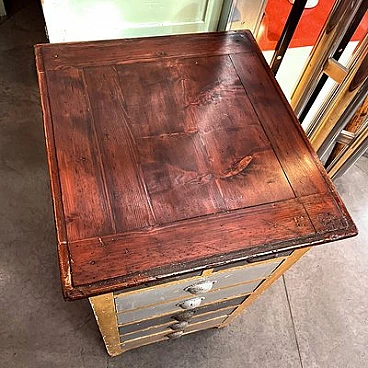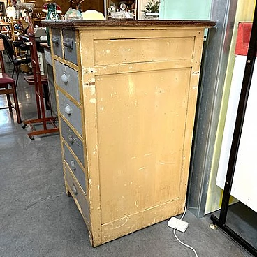 Brown and gray wood industrial optician's chest of drawers, 1950s