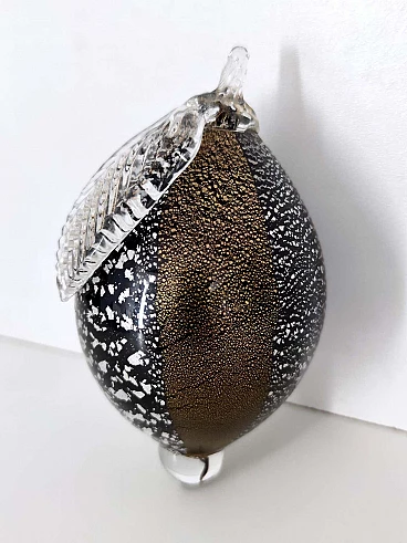 Black Murano glass lemon with gold and silver flakes, 1970s