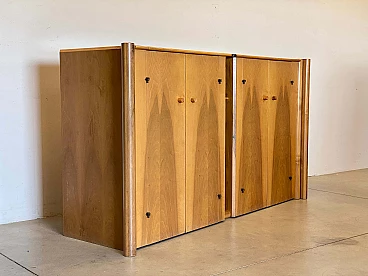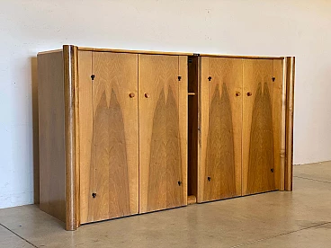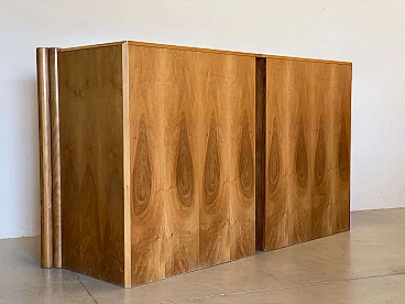Scuderia four-door sideboard in Italian walnut with double cylinder side elements designed by Carlo Scarpa for Bernini. Bibliography: G. Gramigna, "1950/1980 Repertorio", Mondadori, 1985 B. Albertini, S. Bagnoli, "Carlo Scarpa. L'architettura nel dettaglio", Jaca Book, 1988 "Carlo Scarpa designer", ed. Biblioteca dell'immagine, Pordenone, 1984.