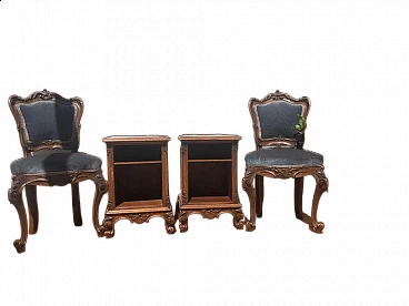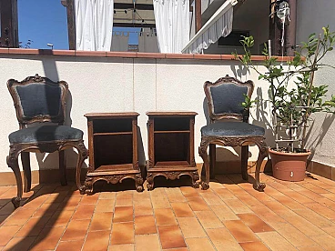 Pair of 18th-century Lombard-style chairs and bedside tables, 1940s