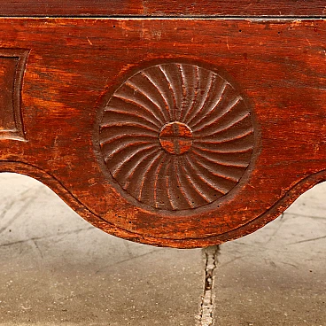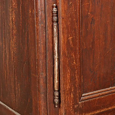 Small carved wardrobe consisting of reworked antique parts. Two-door front decorated with wavy bordered folders, capital carving on the cornice band, flower in a vase on the central part separating the two doors and sunburst carving on the apron. Wavy feet. Interior composed of three shelves and three small drawers, the central one of which is lockable. Provence early 20th century.