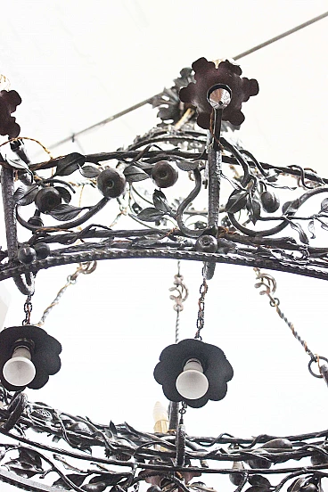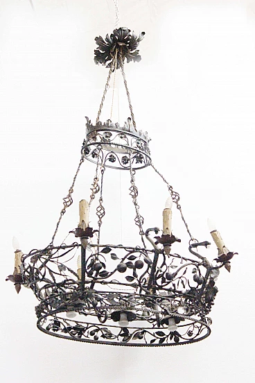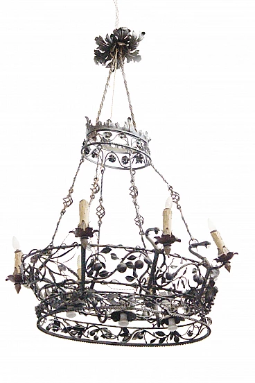 Handcrafted Iron oval Chandelier with 9 lights, Italy, 30s