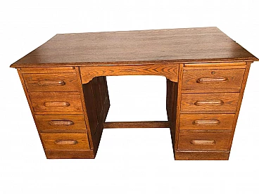 Antique and beautiful desk France period 1940 in oak solid oak period art deco - industrial 1940 about, restored natural, 8 drawers, from the center of the room also finished on the back. Ready to insert