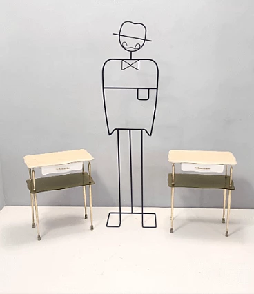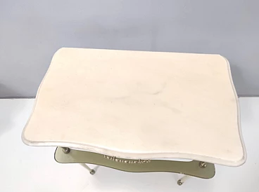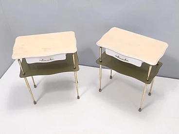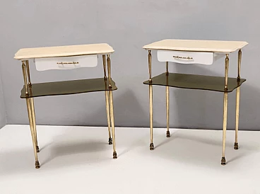 Pair of marble, brass, white beech and glass bedside tables, 1950s