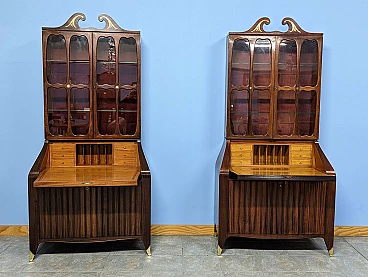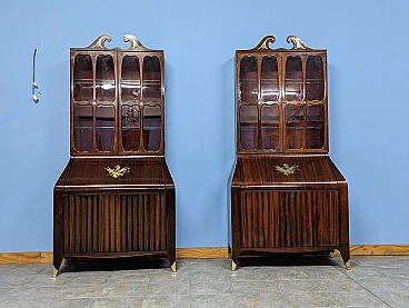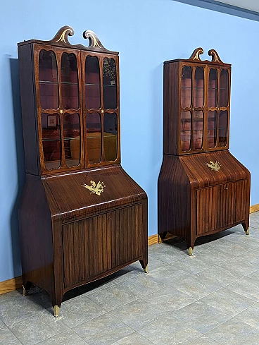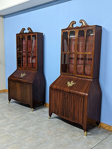 Pair of rosewood trumeau with brass inlays by Paolo Buffa, 1940s