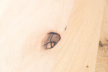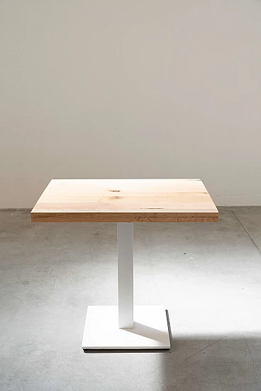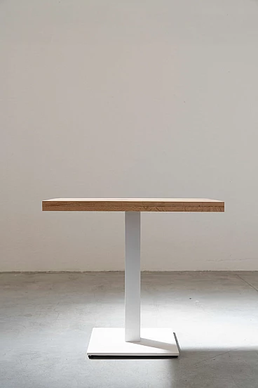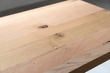 Table with cast iron base and carved oak top, 2000s