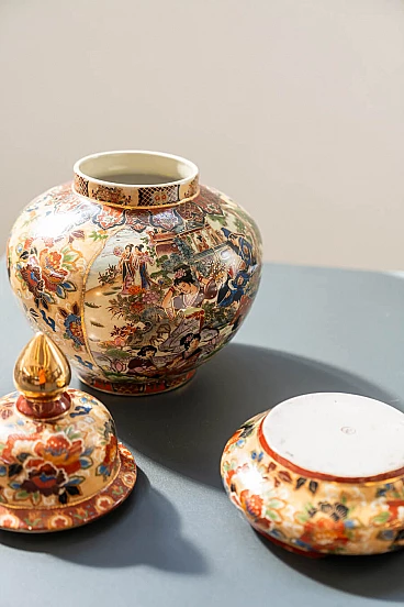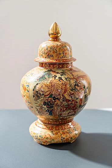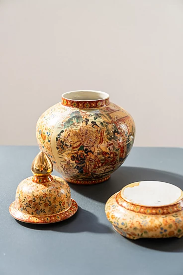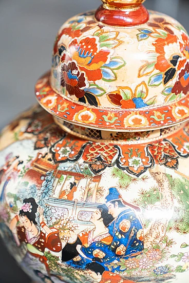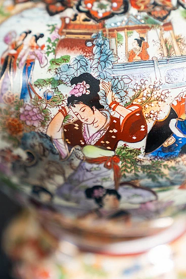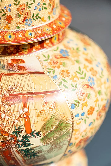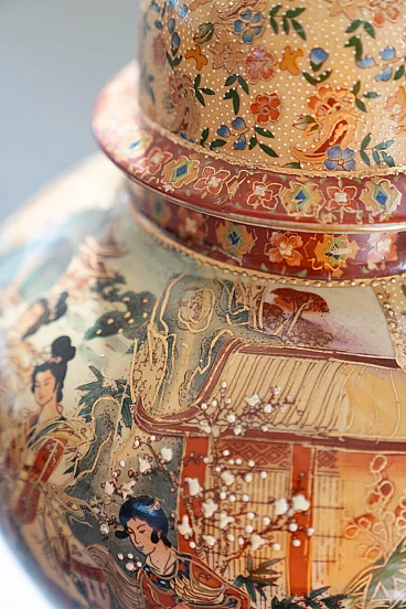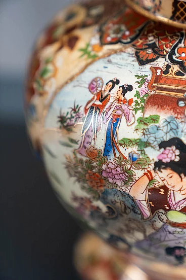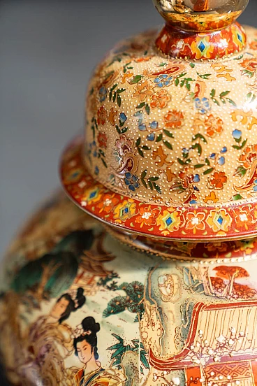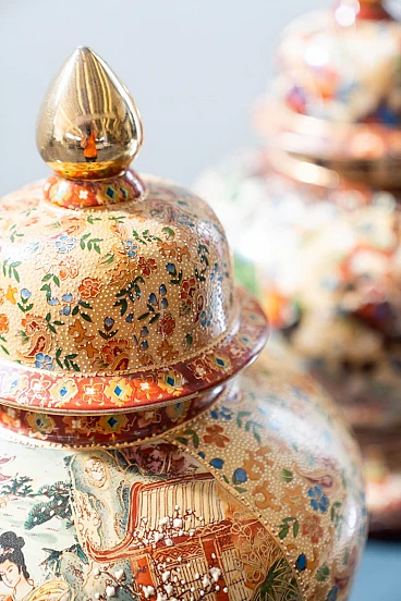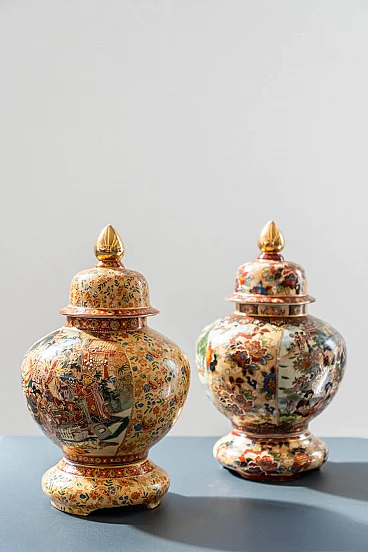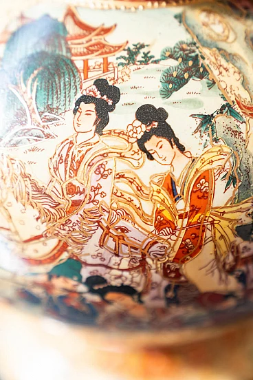 Pair of hand-decorated Chinese ceramic vases by Royal Satsuma, 1960s