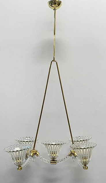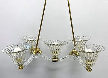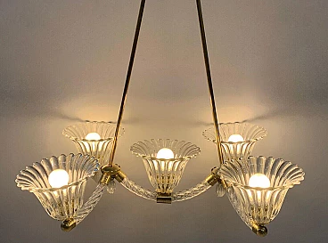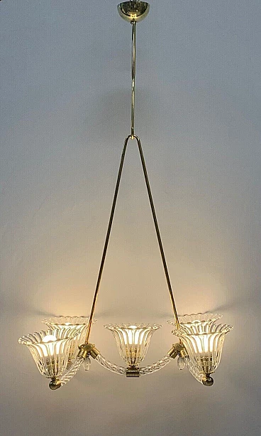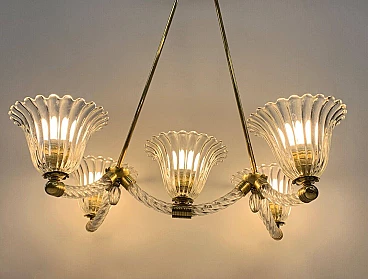 Murano glass chandelier with brass frame by Seguso, 1940s