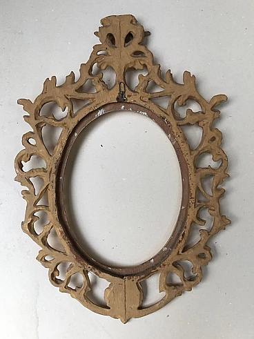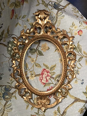 Oval wood frame richly carved and gilded with pure gold leaf, second half of the 19th century. Front light measurements: 24 x 17.5 cm. Back: 25 x 19.5 cm.