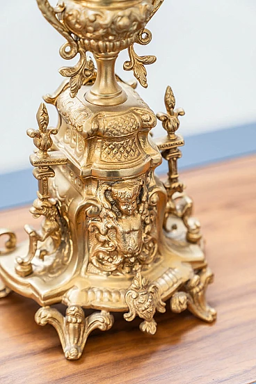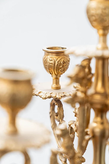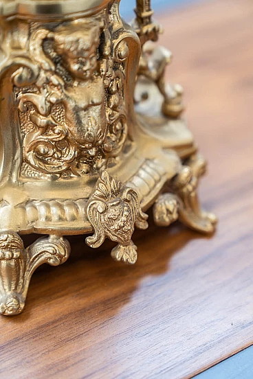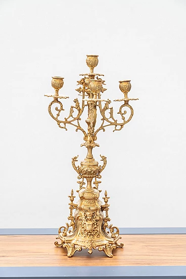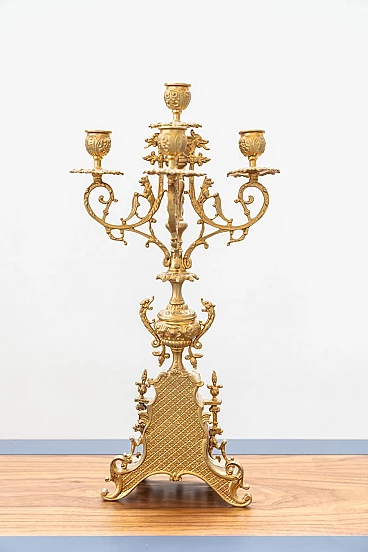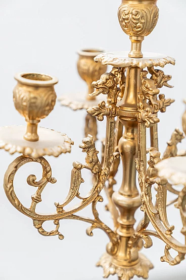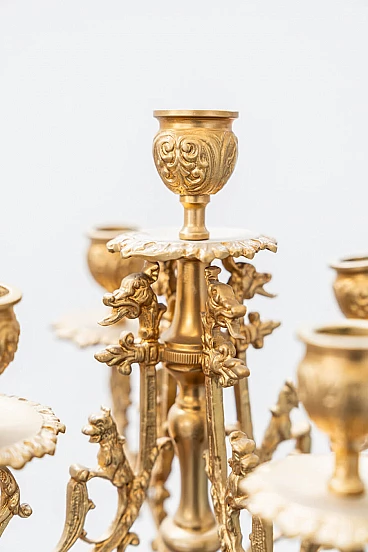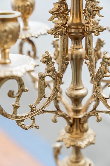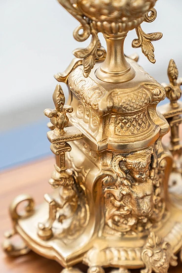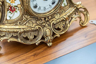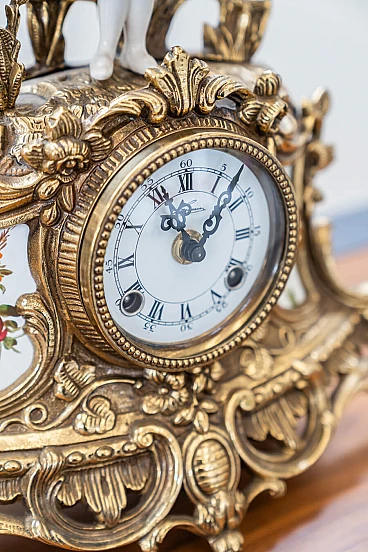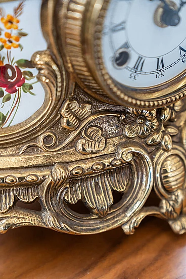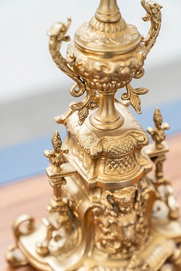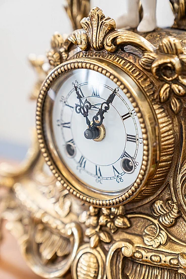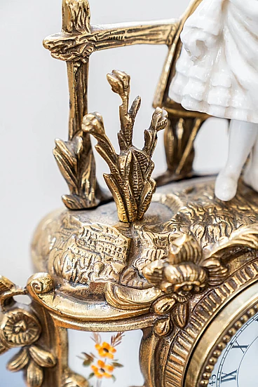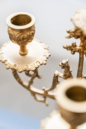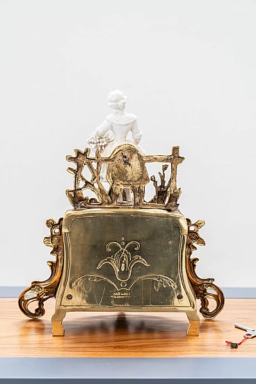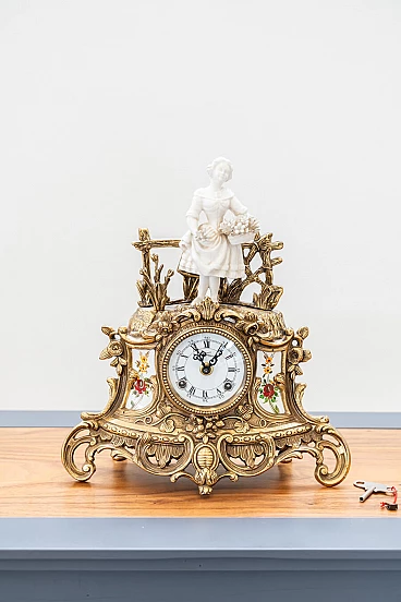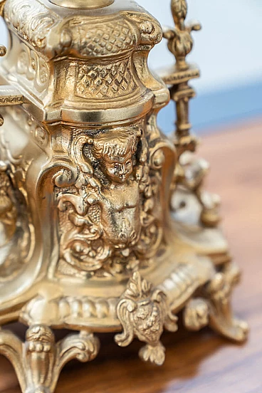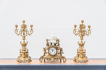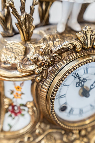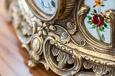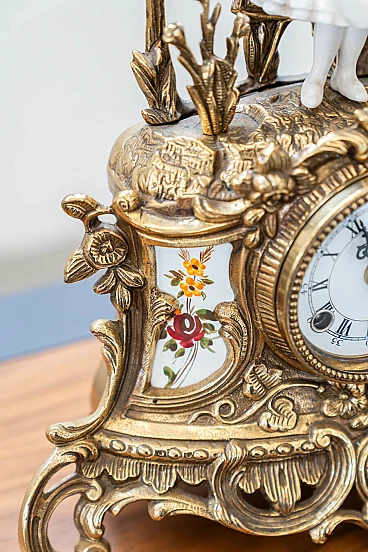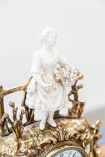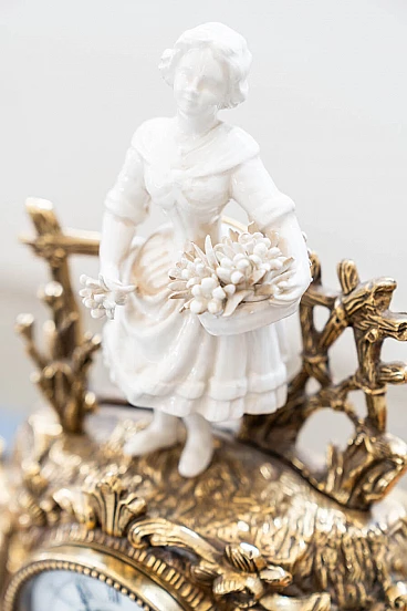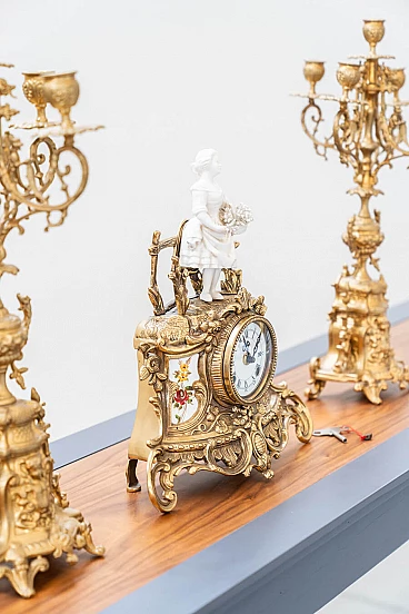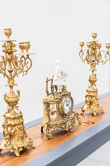 Brass and ceramic triptych with clock and candelabra by Lancini, 1970s