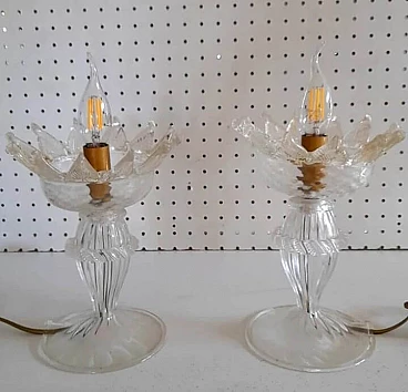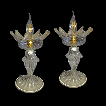 Pair of transparent and gilded Murano glass table lamps, 1990s