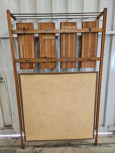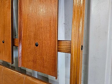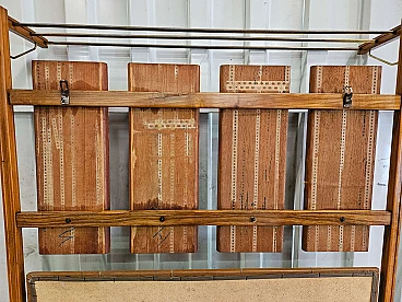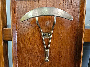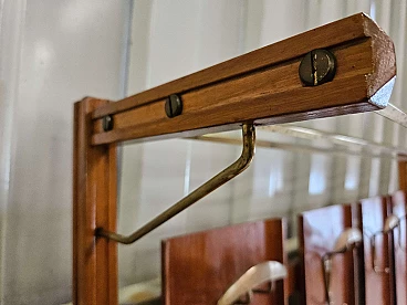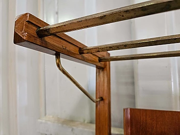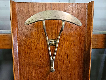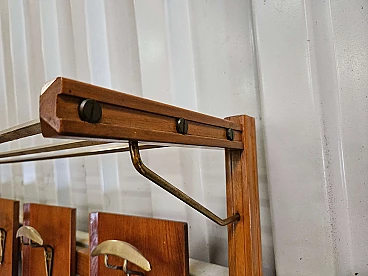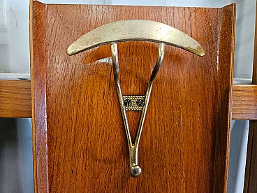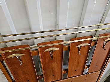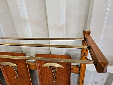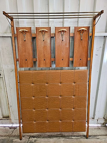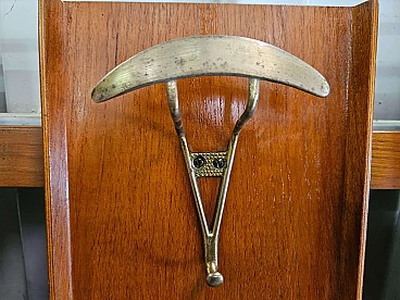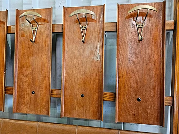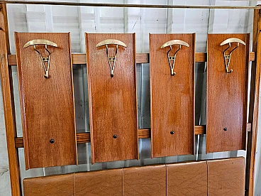 Wall-mounted coat rack in wood, brass and skai, 1950s