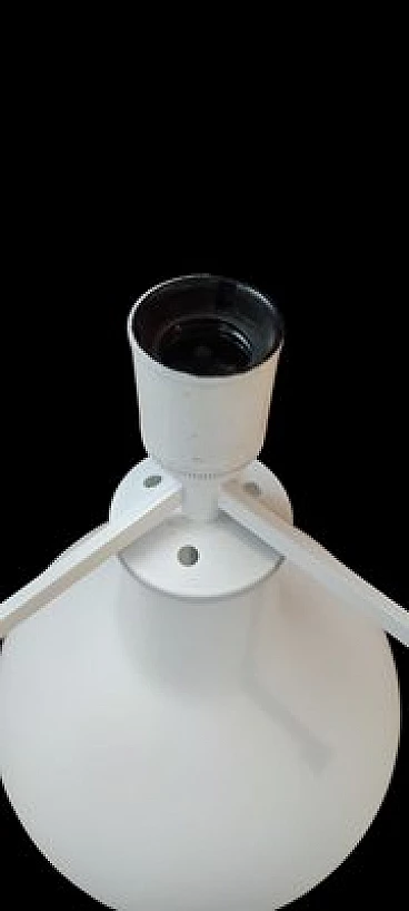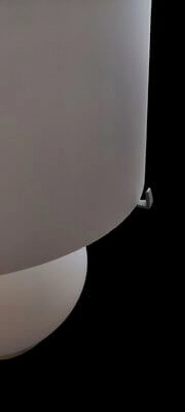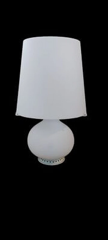 Table lamp in satin-finish lacquered glass designed in 1954 by the famous French master glassmaker and decorator Max Ingrand. Initially the model was called "1853" and later "Fontana", in homage to the company for which the master was artistic director for a decade. For design enthusiasts and connoisseurs of the brand's history, 1853 still remains something of a nickname. The first symbol of a timeless design object, it is still a best seller and a timeless design icon, considered the abat-jour par excellence. The special feature of Fontana is the presence of multiple light sources: the base is equipped with two E14 lights and an E27 light projects an indirect beam of light upwards. The black electrical cable is equipped with two switches and bears the inscription 'Fontana Arte'.
