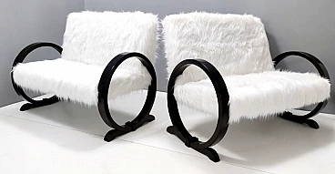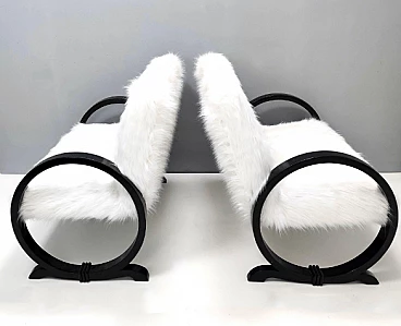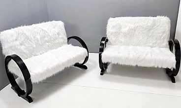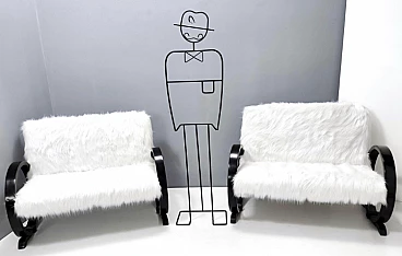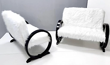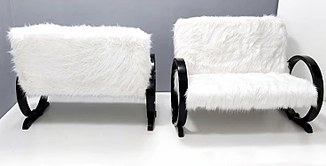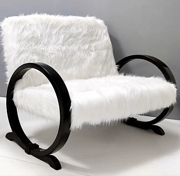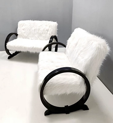 Art Deco ebonized beech and white faux fur sofa, 1940s