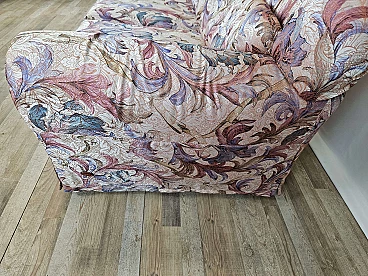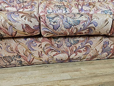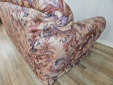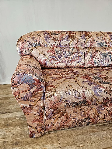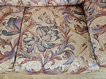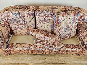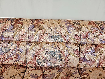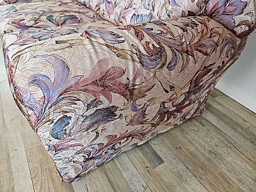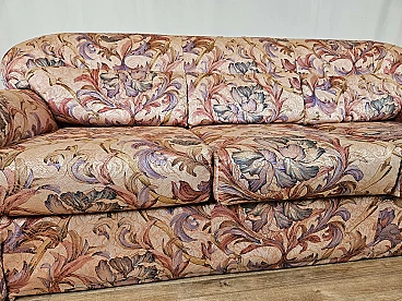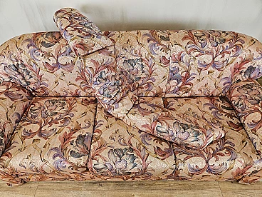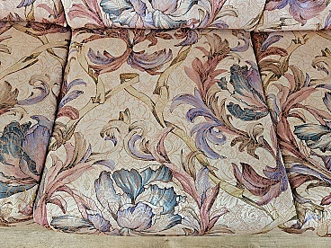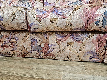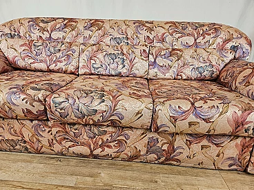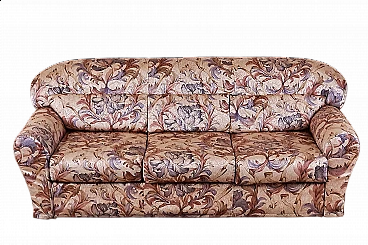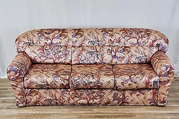 Modern and lively 1970s three-seater sofa covered with a very scenographic and captivating floral fabric. The sofa is in very good condition, it gives fresh and cheerful touches to modern and vintage environments. Perfect in an entrance hall, summer house or office. Recently reupholstered.
