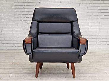 Danish teak and leatherette armchair by Henry Walter Klein for Bramin Møbler, 1970s