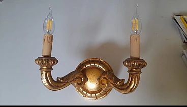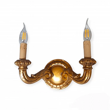 Two-light gilded wood wall lamp, 2000s
