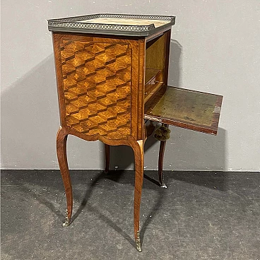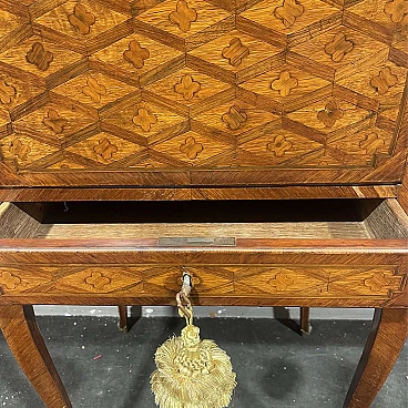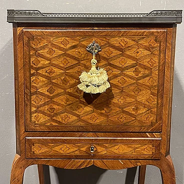 Louis XVI style inlaid wood secrétaire with marble top, 19th century