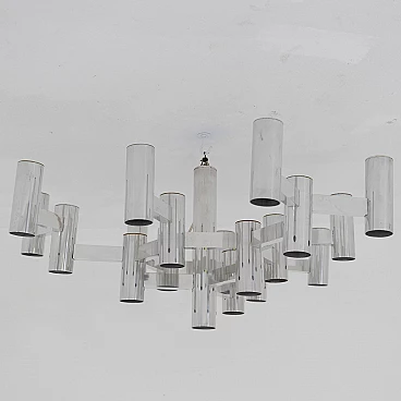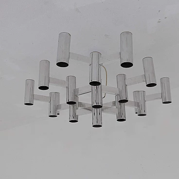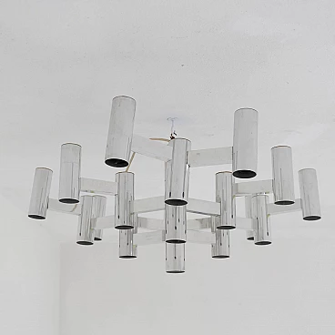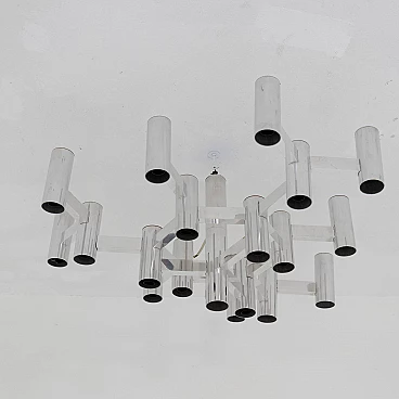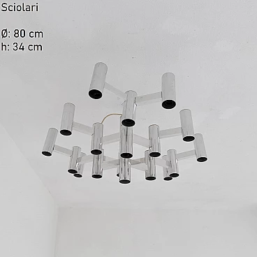 Chrome-plated 19-light ceiling lamp by Sciolari, 1970s