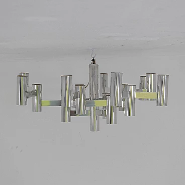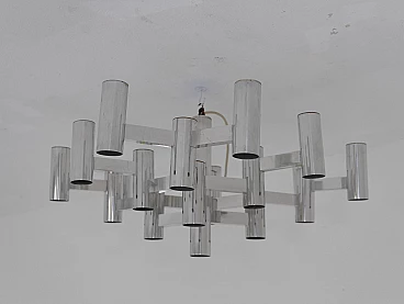 Chromed metal ceiling lamp manufactured by Sciolari in the 1970s with 19 lights.