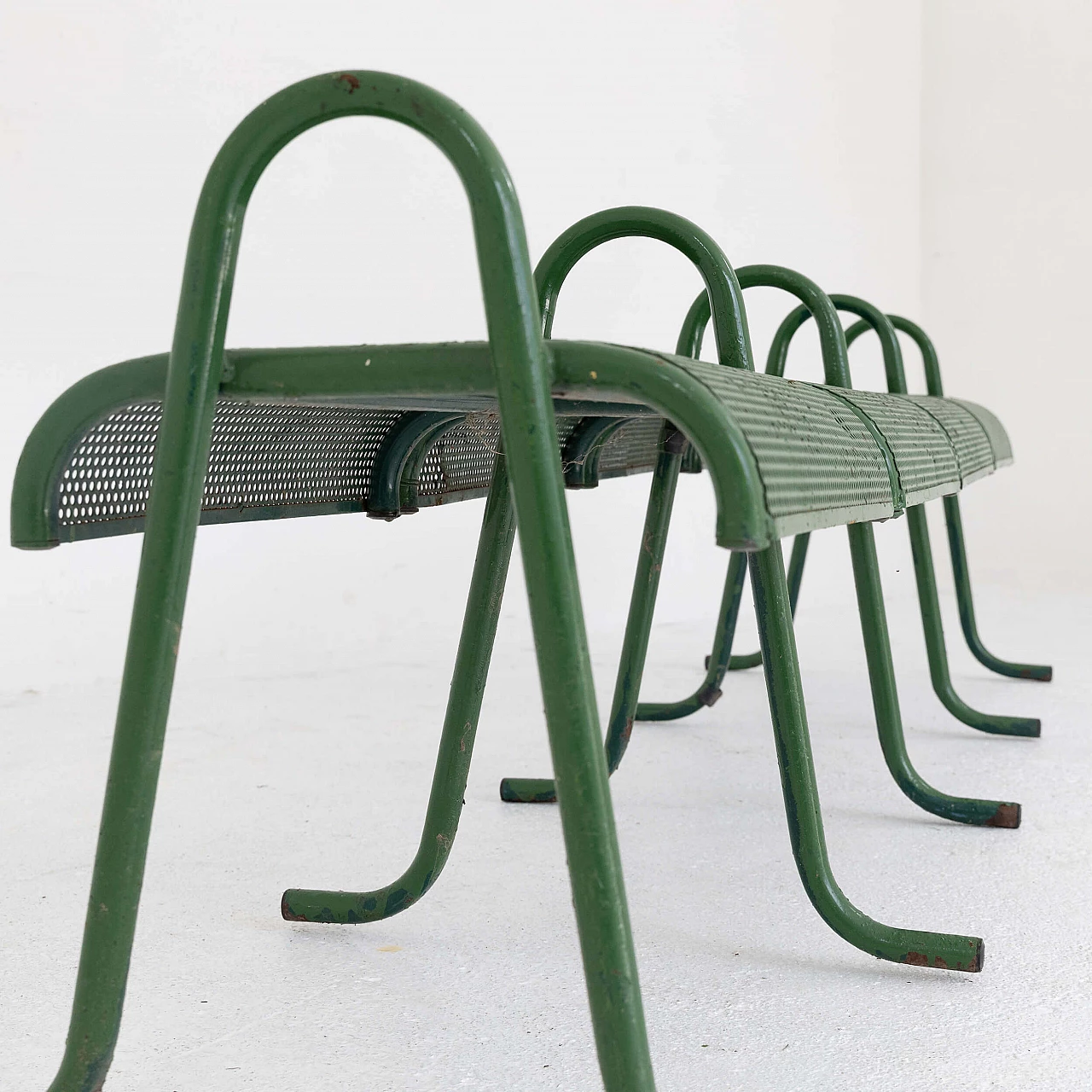 Varnished metal garden bench, 1950s