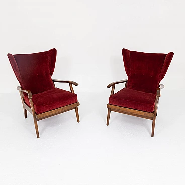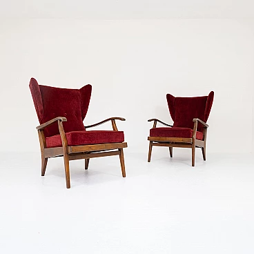 Pair of Camea armchairs by Renzo Franchi in walnut, 1950s
